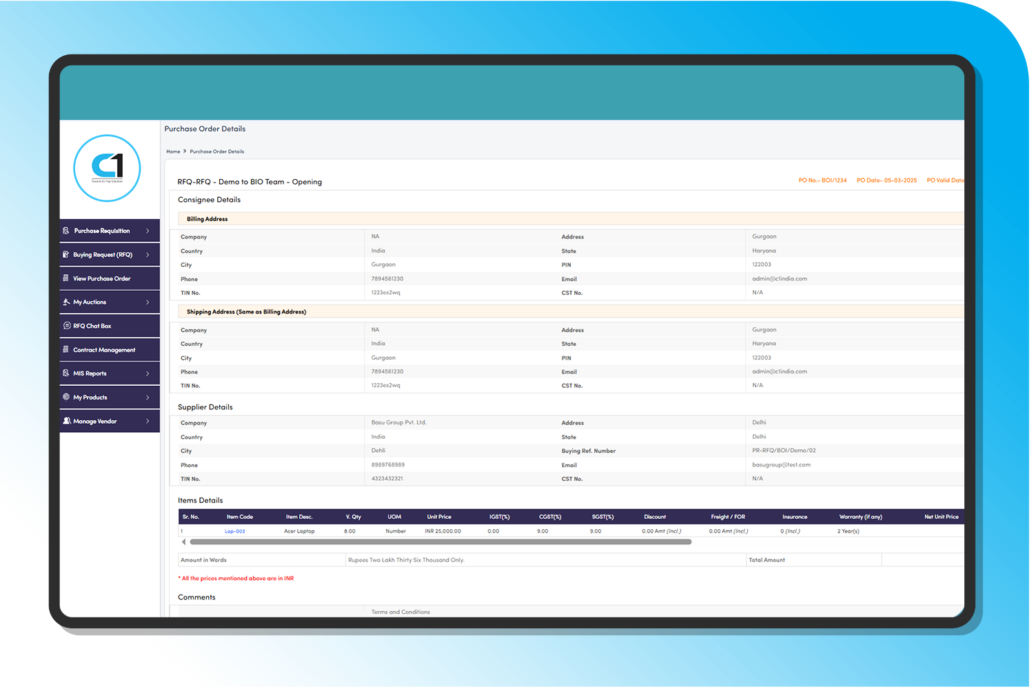 Our e-Procurement software solution integrates smoothly with enterprise systems, enabling seamless data exchange across procurement and business functions. Also it is scalable, supporting businesses from small ventures to large corporations as they grow.